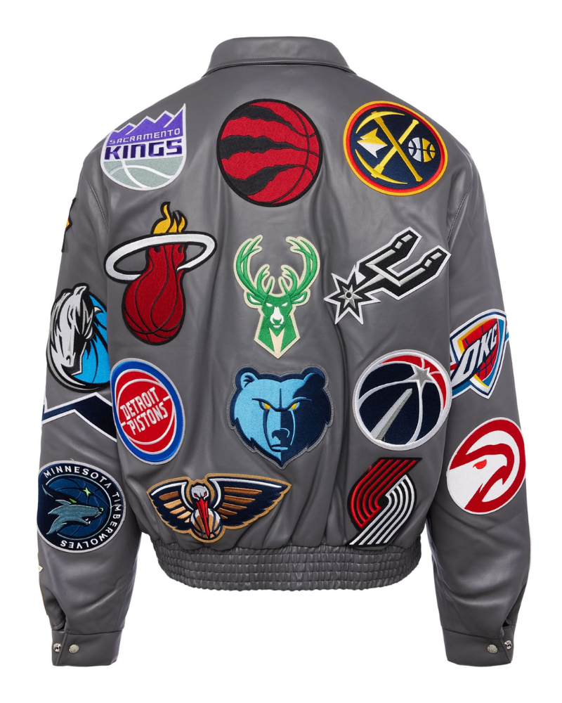 NBA COLLAGE VEGAN LEATHER JACKET Grey